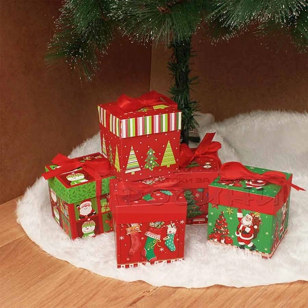 Кутията е изработена от висококачествена хартия и се отличава с тематични коледни мотиви, които носят радост и настроение. Кулминацията на дизайна е стилната червена панделка, която служи като финална декорация и премахва нуждата от допълнително опаковане. Компактният ѝ размер от 15 см я прави изключително практична за подреждане под елхата или за лично връчване на приятели, колеги и роднини.