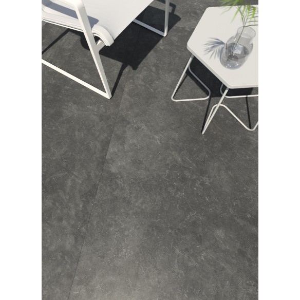 Черен гранитогрес с размери 60x120 см. В един пакет се съдържат 2 броя плочки с обща покривност 1,44 м2. Повърхността на плочката е мат. Производител е Испанската марка Azulejos Benadresa. Подходящ за под и стена. Гранитогресът е първо качество с правоъгълна форма и дизайн 'бетон/цимент'. Продава се в кашон и цената е за квадратен метър.