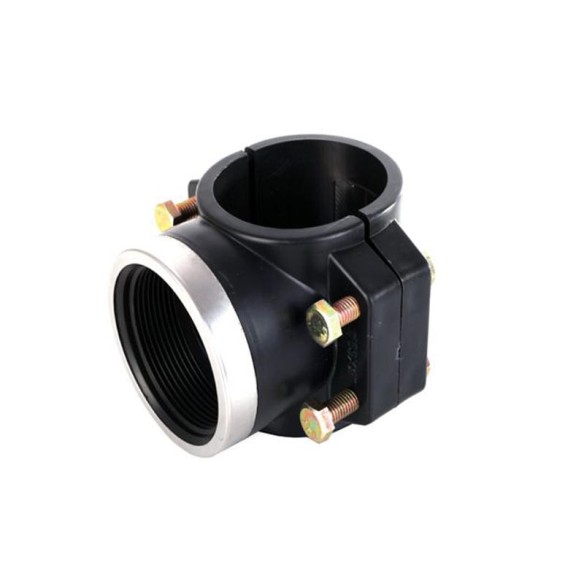 Полиетиленова водоземна скоба за полиетиленови тръби. Размерът на скобата е Ф 50 х 1". Използва се за направа на отклонения по тръбопроводи. Предназначена е за монтаж на полиетиленови тръби. С 4 болта. Усилващият пръстен е от неръждаема стомана, а болтовете от поцинкована или неръждаема стомана. Фитингите са подходящи за използване в системи за снабдяване с питейна вода. Могат да се илзагат на слънчева светлина, защото притежават UV защита с отлична химическа устойчивост.