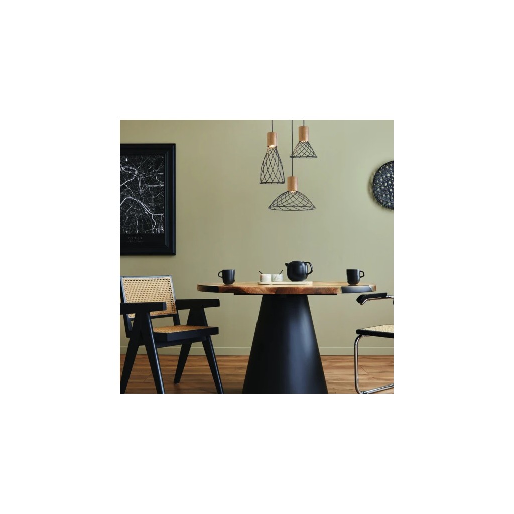 Пенделът Tornade Black впечатлява с уникалното си съчетание на индустриален стил и естествена топлина, внесена от дървения детайл. Черното прахово боядисване придава устойчивост и модерен характер, докато дървото добавя нотка уют и баланс. Това е осветително тяло, което не само осветява, но и подчертава индивидуалността на помещението.