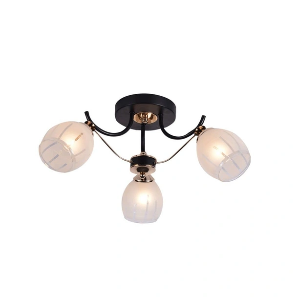 Полилеят е изработен от метал и стъкло – комбинация, която осигурява дълъг живот, добър визуален ефект и лесна поддръжка. Металната основа гарантира стабилност, а стъклените абажури разпръскват светлината равномерно и създават мека и приятна обстановка. Моделът работи с три крушки с цокъл E27, което дава възможност за избор на желаната яркост и тип светлина според предпочитанията – топла, неутрална или студена.