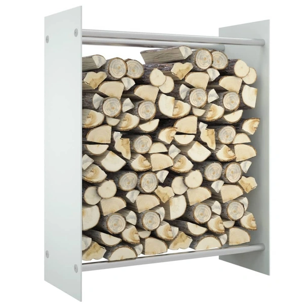Стойка за дърва, бяла, 80x35x100 см, закалено стъкло