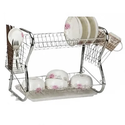 Сушилник за съдове на две нива с кошничка 26x38x42 см никел