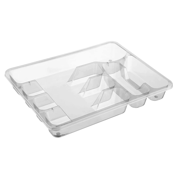 Пластмасов прозрачен органайзер за прибори на марката BERRA с 6 отделения, предназначен за чекмедже.