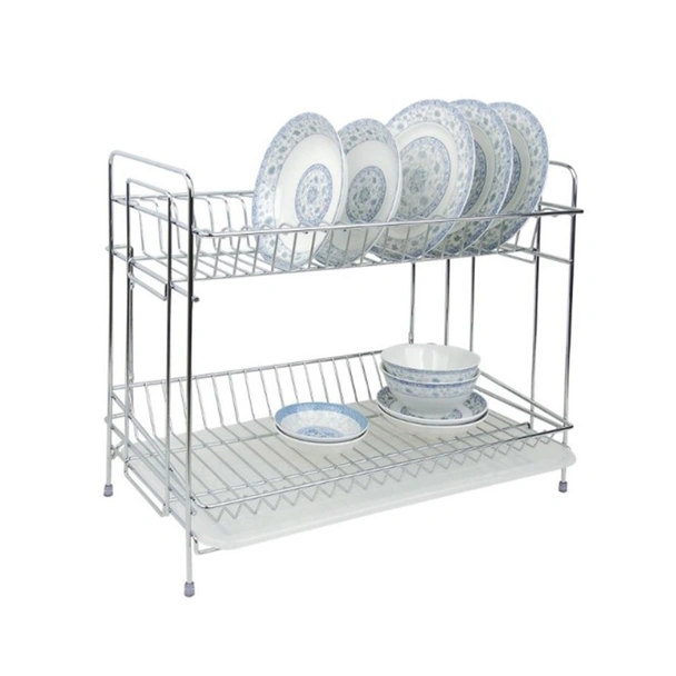 Горната му част е проектирана за поставяне на чинии, а долната за купи и други по-дребни кухненски съдове.