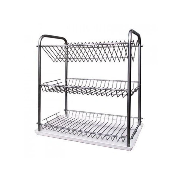 Този сушилник за съдове на три нива с табла е идеалният избор за всяка кухня, която се нуждае от ефективна организация на съдовете след измиване. Със своите компактни размери 45x40x25 см, той осигурява достатъчно място за подреждане на чинии, чаши, купи и прибори, без да заема прекалено много пространство.