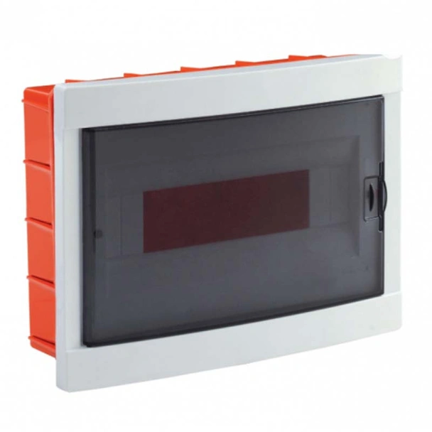 Електрическо табло с едноцветен прозрачен капак, 12 бр. модули, 1 ред, степен на защита IP40. Размерите на кутията са 284x100x215 мм. Предназначена е за вграден монтаж. Изработена е от висококачествени самогасящи материали, неподдържащи горенето. Корпусът е издръжлив на открит огън и високи температури. Монтираната в кутията апаратура е защитена от пряк допир до тоководещите части. Възможност за комплектоване с DIN шина при монтаж на апаратура и клемореди за свързване на неутралата и заземителния проводник.