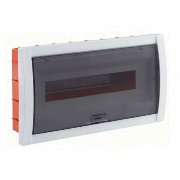 Електрическо табло с едноцветен прозрачен капак, 18 бр. модули, 1 ред, степен на защита IP40. Размерите на кутията са 365x103x212 мм. Предназначена е за вграден монтаж. Изработена е от висококачествени самогасящи материали, неподдържащи горенето. Корпусът е издръжлив на открит огън и високи температури. Монтираната в кутията апаратура е защитена от пряк допир до тоководещите части. Възможност за комплектоване с DIN шина при монтаж на апаратура и клемореди за свързване на неутралата и заземителния проводник.