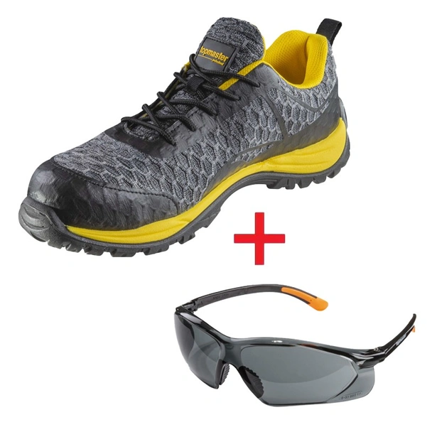 Промо пакет от работни обувки второ поколение WSS1C + подарък защитни очила SG01 със затъмнени стъкла, също второ поколение, на марката TOPMASTER.
