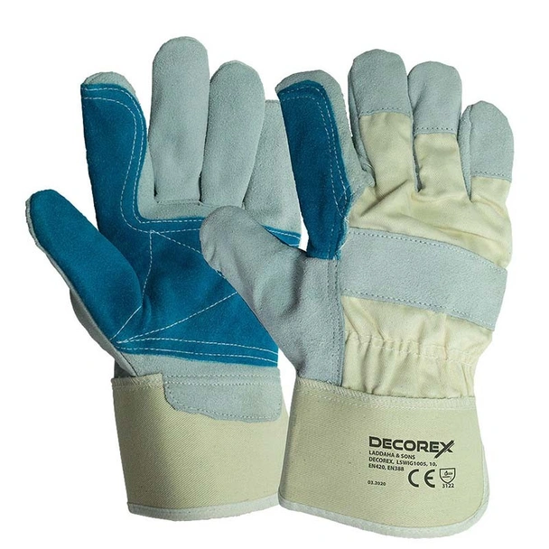 Усилени работни ръкавици на марката DECOREX, изработени от цепена телешка кожа.