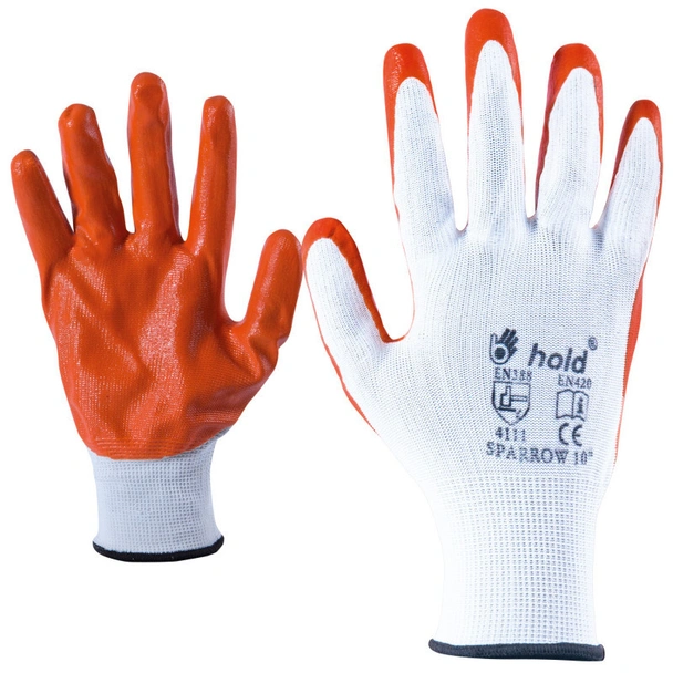 Ръкавици с пет пръста, изработени от безшевно плетено полиестерно трико, топени в нитрил с еластичен маншет.