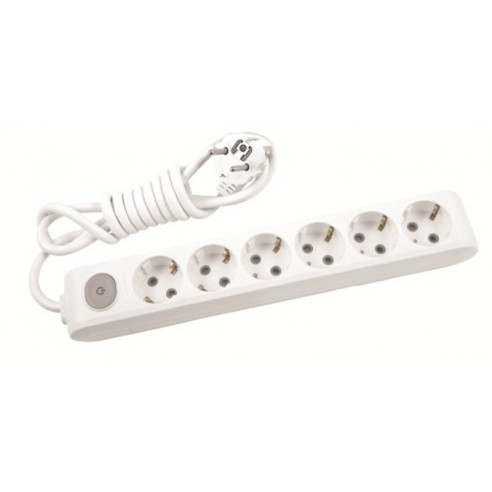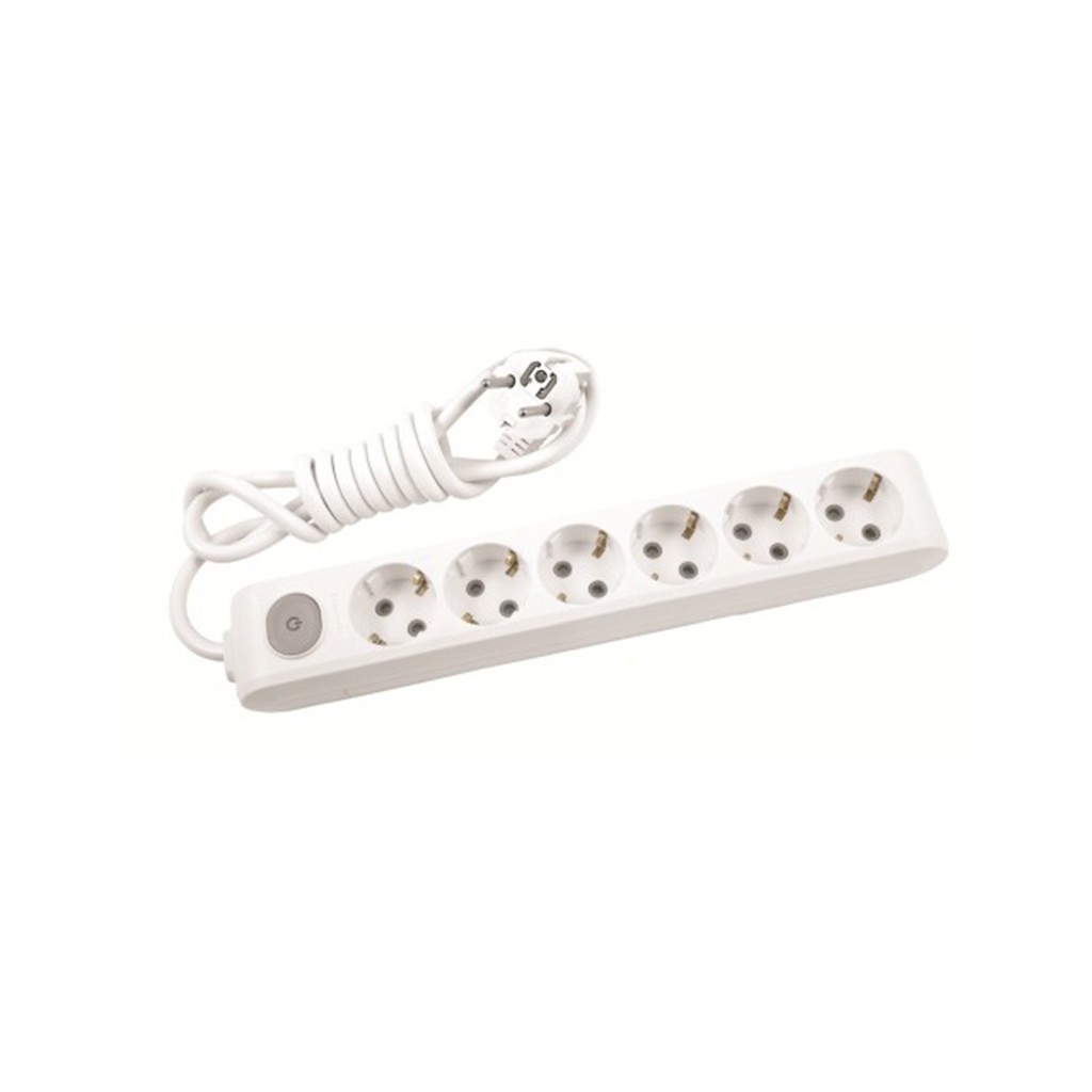 Разклонител с 6 гнезда и ключ 3 м кабел бял PANASONIC