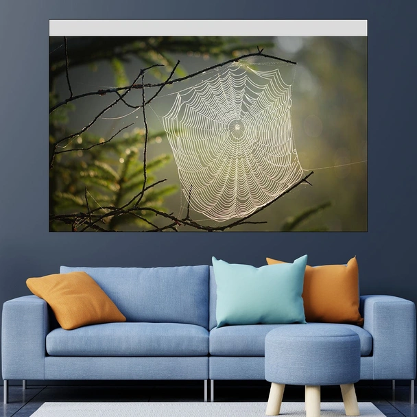 Декорация за стена (картина, пано) с мотив "Паяжина в гората - картина пано за стена". Изработена от олекотено PVC с дебелина 5 мм или канава от 100% памук, опъната върху дървена подрамка с дебелина 5 см. Изображението се печата с висококачествен UV печат, което е гаранция за запазване на цветовете с години!