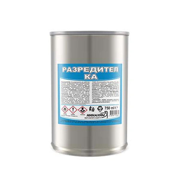 Универсален разредител КА на производителя Нинахим, предназначен за разреждане до работен вискозитет на двукомпонентни полиуретанови грундове, лакове и емайллакове, еднокомпонентни грундове, емайллакове на база нискомаслена алкидна смола.