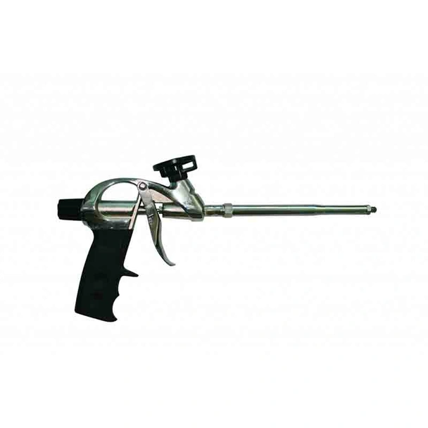 Пистолет за полиуретанова пяна TF на марката Top Strong с лек алуминиев корпус, стоманен никелиран спусък и тефлонов адаптор.