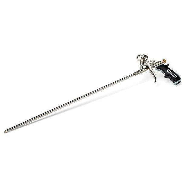 Пистолет за PU пяна Метал Лайт XL IRION с удължена тръба 60 см за удобно нанасяне и ръкохватка с гумирано покритие.