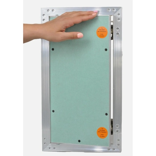 Ревизионна вратичка на марката AWENTA с размери 200x400 мм, изработена от алуминий и водоустойчив гипсокартон с дебелина 12.5 мм.