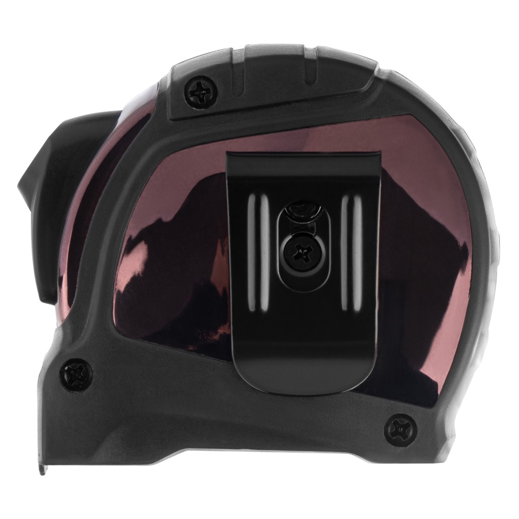 Корпусът от ABS пластмаса е удароустойчив и не се плъзга в ръката, което осигурява сигурен захват дори при продължителна работа. Металната пружина от въглеродна стомана е проектирана за дълъг живот и поддържа плавно навиване на лентата.