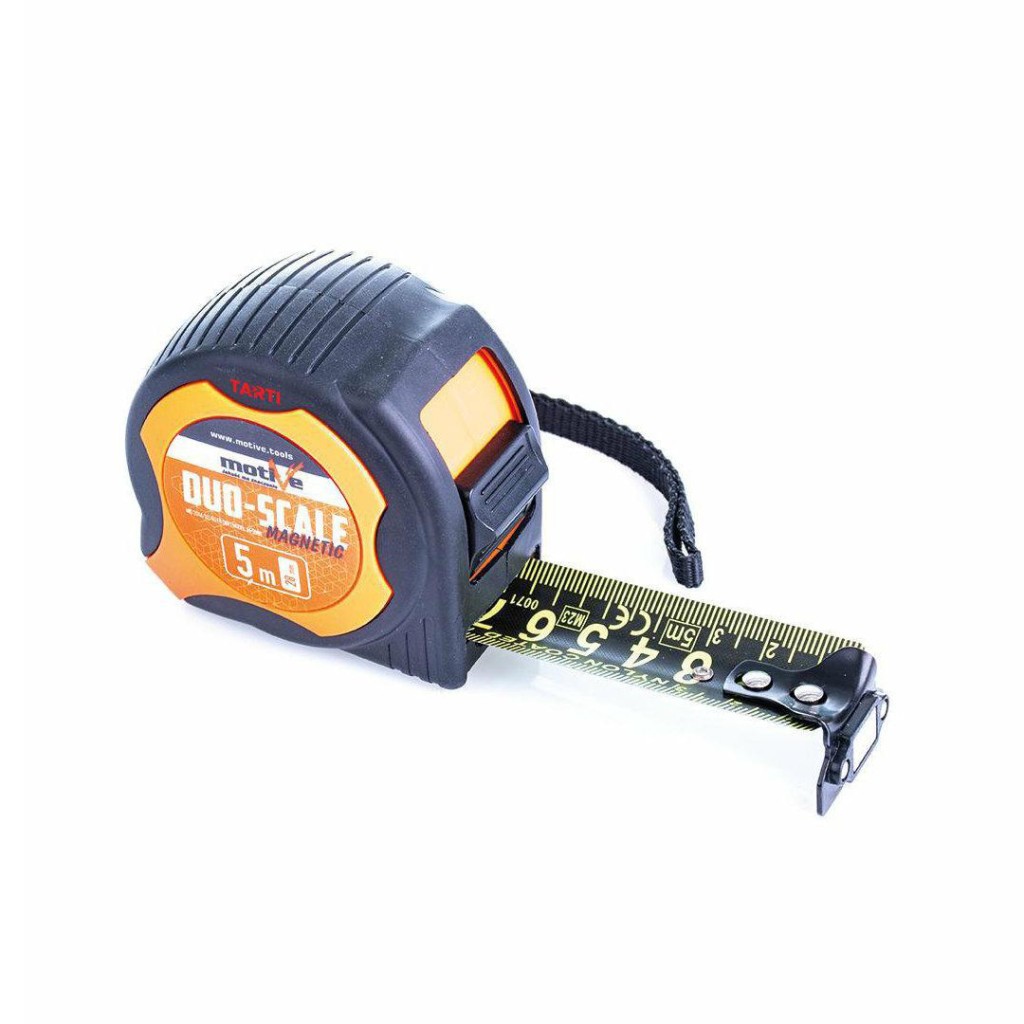 Изберете ролетка MOTIVE 5 м x 28 мм с магнит и двустранна скала – практичен избор за всеки майстор, който цени здравината, точността и удобството при работа.