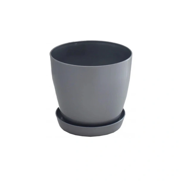 Пластмасова гланцирана кръгла саксия за цветя с подложка.