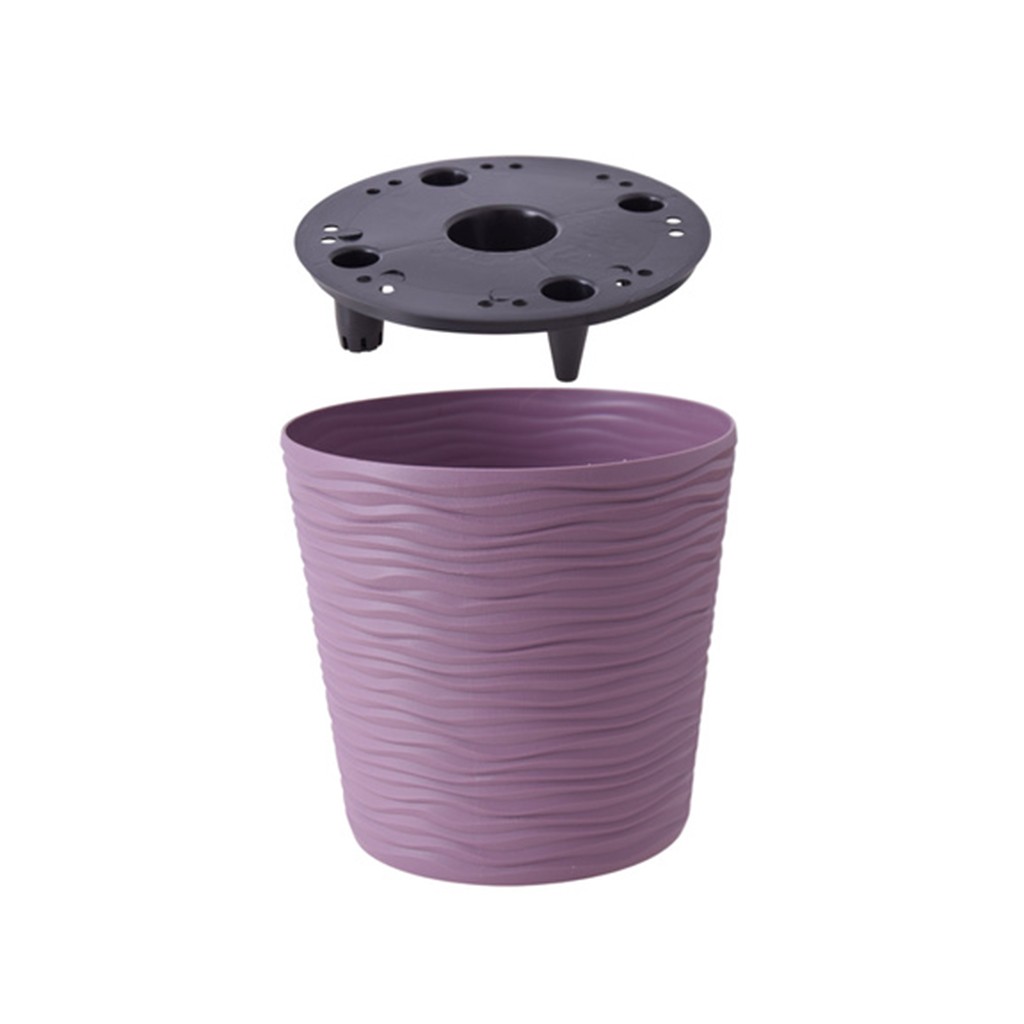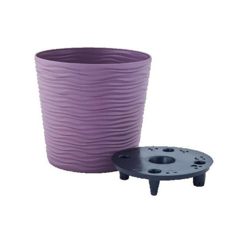 - Елегантен дизайн: Релефната повърхност и наситеният лилав цвят придават на саксията изискан и модерен вид, който се вписва перфектно във всяка обстановка.