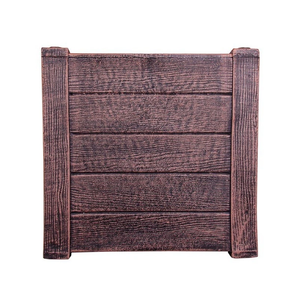 Квадратна кашпа за засаждане на цветя, туи и декоративни растения. Външният вид наподобява дървена повърхност.