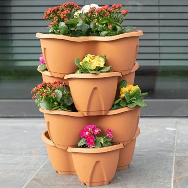Изработена от висококачествен полипропилен с UV защита, саксията е напълно подготвена за дълготрайна употреба на открито. Традиционният цвят теракота е не само естетически издържан, но и защитен от избледняване под въздействието на силните слънчеви лъчи. Материалът е устойчив на температурни промени и влага, което гарантира, че Вашата вертикална конструкция ще запази своята здравина и привлекателен вид през различните сезони.