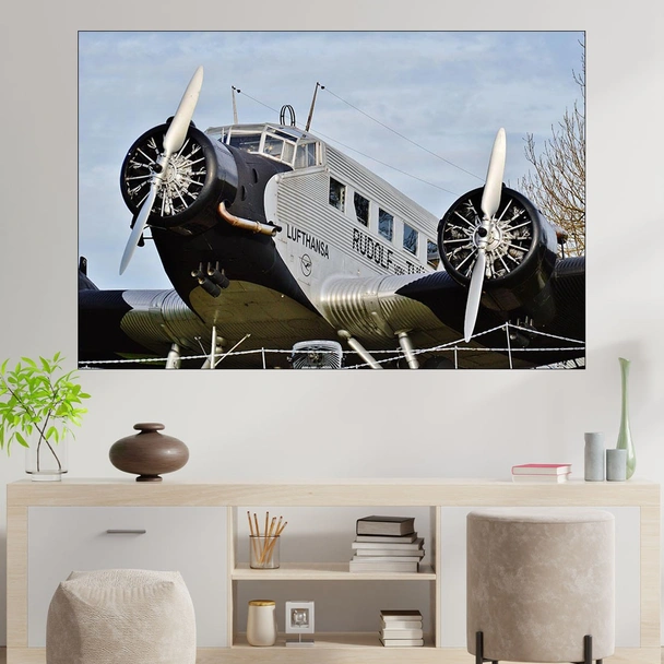 Декорация за стена (картина, пано) с мотив "Реставриран стар самолет - картина пано за стена". Изработена от олекотено PVC с дебелина 5 мм или канава от 100% памук, опъната върху дървена подрамка с дебелина 5 см. Изображението се печата с висококачествен UV печат, което е гаранция за запазване на цветовете с години!