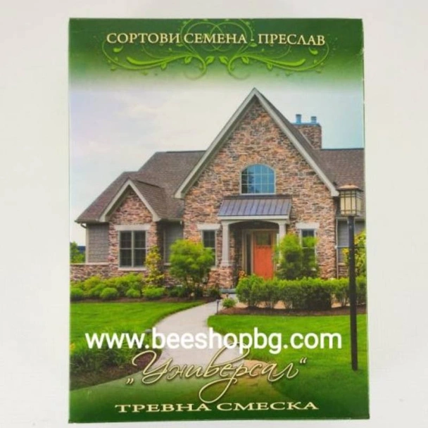 Цветна тревна смеска Универсал се състои от видове с фини листа, които осигуряват отличен килим от компактна и здрава трева,която расте добре и на слънце и на сянка. Предлага се в разфасовка от 1 кг, която е достатъчно за покритие около 30-40 кв.м площ.