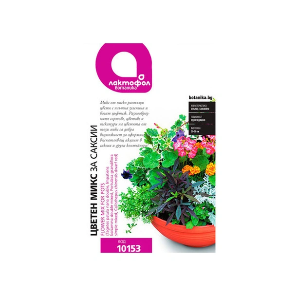 Семената смес е комбинация от Тагетес, Импатиенс, Калдъръмче и нискорастяща Астра.