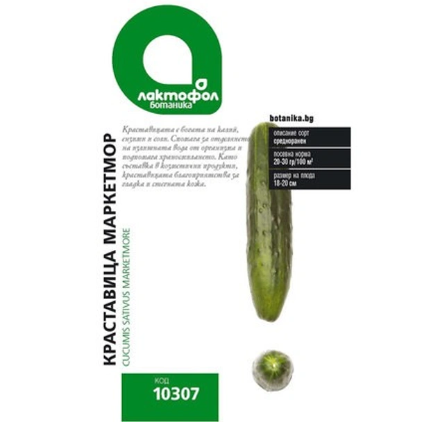 Семена краставица Маркетмор на марката ЛАКТОФОЛ БОТАНИКА, подходящи за сеитба за разсад през януари - март и на открито - през март - юни.