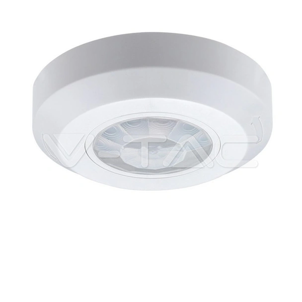 Инфрачервен сензор за таван обхват 360º. Kомпактен инфрачервен сензор за движение, подходящ за употреба на места без изисквания за влаго и прахозащита: в административни сгради, коридори в жилища, стълбища и т.н. Предимствата на този датчик е че спестява от разходи за електроенергия. може да се ползва както в затворени помощения така и на открито. Съвместим с повечето от продуктите на V-TAC.