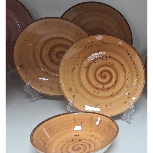 Комплектът съдържа 6 чинии за основно ястие - 27 см, 6 дълбоки чинии - 23 см, 6 купи за супа - 16 см и 6 чинии за десерт - 20 см.