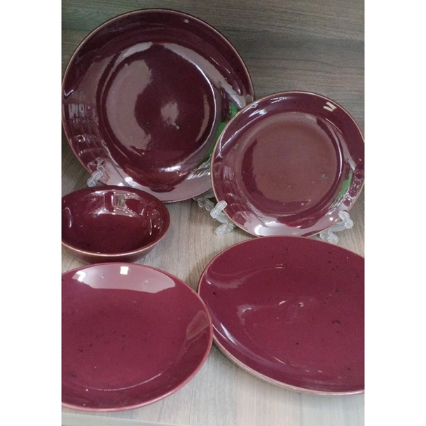 Този порцеланов сервиз за хранене от 24 части в цвят тъмна вишна е идеалното съчетание между стил и практичност. Изработен с внимание към детайла, сервизът Antik Микс се отличава със своята уникална шарка на пръски и ръчна изработка, което го прави перфектен избор както за ежедневна употреба, така и за специални поводи.