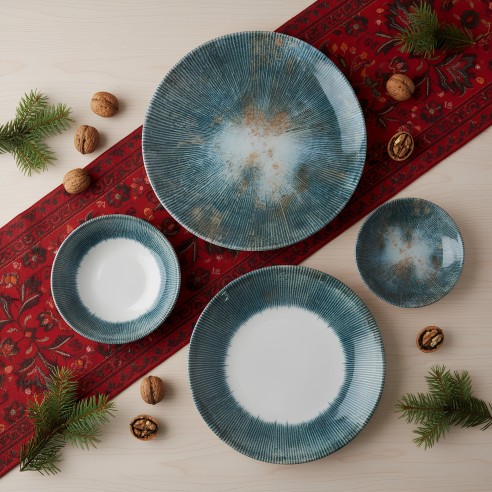 Сервизът за хранене Земя е елегантно решение за всяка трапеза, комбиниращо стил, функционалност и високо качество. Вдъхновен от естествените земни нюанси, комплектът съчетава художествен дизайн с практичност, превръщайки всяко хранене в специално изживяване. Независимо дали го използвате ежедневно или при по-официални поводи, този порцеланов сервиз добавя усещане за уют и изтънченост.