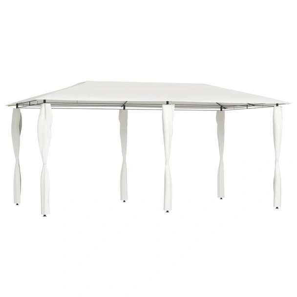Осигурете си просторен и надежден подслон за Вашите семейни и приятелски събирания с тази елегантна градинска шатра в нежен кремав цвят. Със своите внушителни размери, тя е идеалното решение за барбекюта, следобедни пикници, рождени дни и други важни събития във Вашето външно пространство. Дизайнът включва специални текстилни покривала за стълбовете, които придават завършен и изискан вид на конструкцията, превръщайки я в светъл и гостоприемен център на Вашата градина.