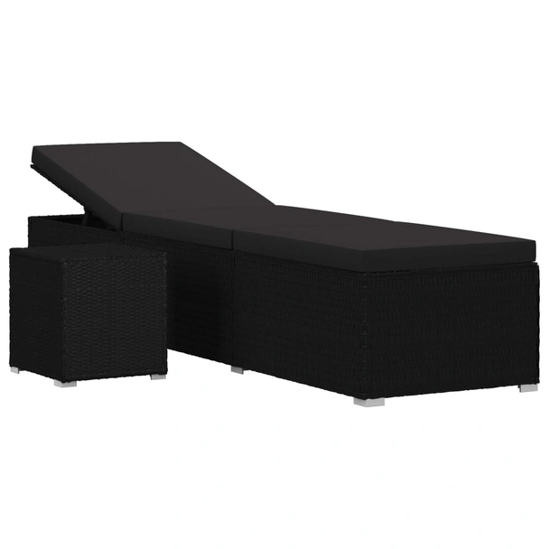 Шезлонг с шалте и маса за чай, полиратан, черен