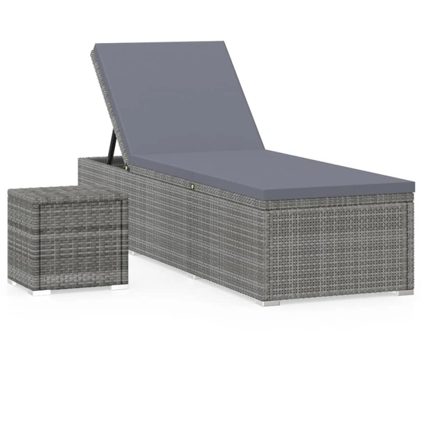 Шезлонг с шалте и маса за чай, полиратан, сив