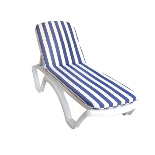Възглавницата е предназначена за поставяне на шезлонг, изработена е от текстил, с изчистен дизайн, със синьо рае, в размери 190 х 55 см.