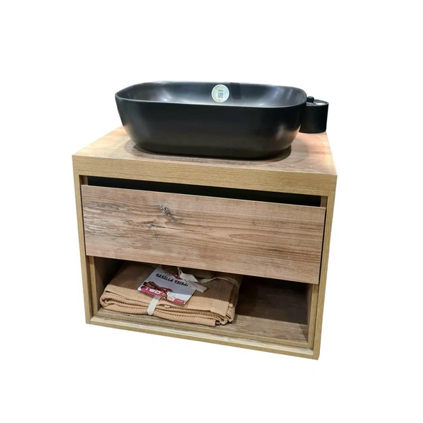 Моделът разполага с едно просторно чекмедже, което осигурява достатъчно място за съхранение на всичките ви тоалетни принадлежности. Чекмеджето е оборудвано с механизъм за плавно затваряне (soft close), което гарантира безшумно и гладко прибиране. Тази функция не само предотвратява износването на мебела, но и допринася за спокойствието във вашата баня. Шкафът разполага и с удобна ниша за съхранение, идеална за козметични продукти, кърпи или декоративни елементи, които искате да са винаги под ръка. Шкафът се доставя сглобен и готов за монтаж, което спестява време и усилия, а всички необходими крепежни елементи са включени в комплекта. Имайте предвид, че цената не включва мивка, смесител и други аксесоари.