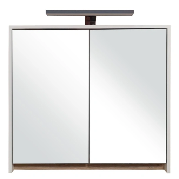 Горен шкаф за баня с осветление Nova country FORMA VITA с две огледални врати, предназначен за окачен/стенен монтаж.