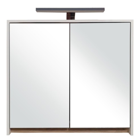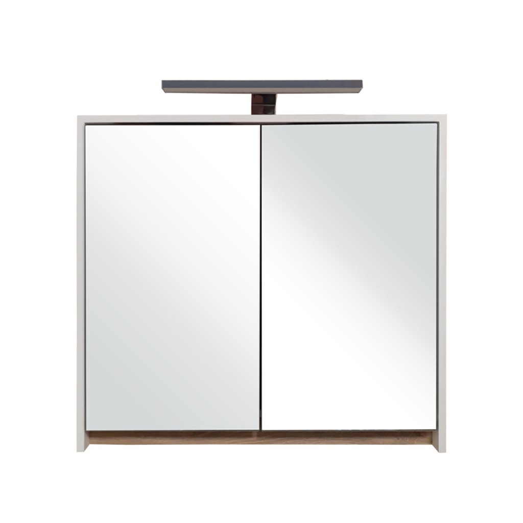 Горен шкаф за баня с осветление Nova country FORMA VITA с две огледални врати, предназначен за окачен/стенен монтаж.