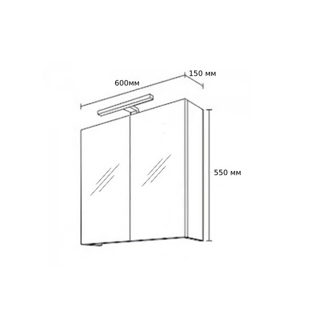 Шкафът е с широчина 60 см, височина 55 см и дълбочина 15 см.
