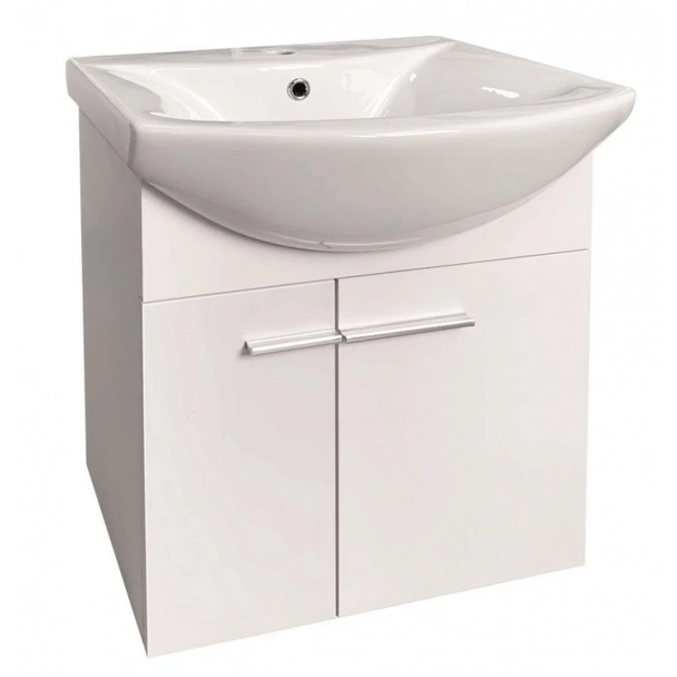Моделът разполага с две врати, които осигуряват достатъчно място за съхранение на всичките ви тоалетни принадлежности. Те са оборудвани с висококачествени панти с механизъм за плавно затваряне (soft close), който гарантира безшумно и гладко прибиране. Тази функция не само предотвратява износването на мебела, но и допринася за спокойствието във вашата баня. Елегантните дръжки в лъскав, матиран цвят добавят модерен акцент. Шкафът е в комплект с висококачествена порцеланова мивка, която е изключително лесна за почистване и поддръжка, осигурявайки безупречна хигиена всеки ден.