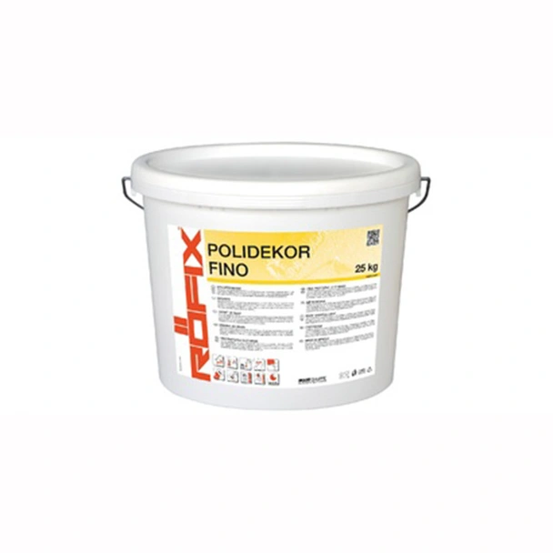 Универсална фабрично приготвена пастьозна шпакловъчна смес RÖFIX POLIDEKOR FINO, подходяща за шпакловане на тавани, готови панели, стенни плоскости, както и за изравняване на грапави варо-циментови основни мазилки.