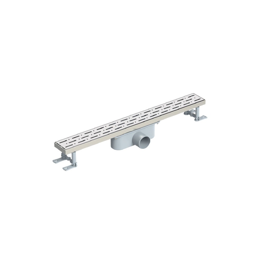 Линеен сифон на марката MERTINOX с метален корпус и решетка от неръждаема стомана.