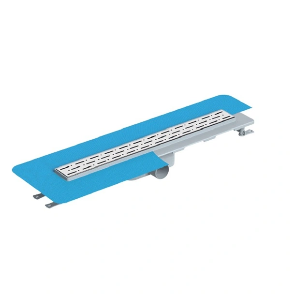 Линеен подов сифон с текстилна мембрана за хидроизолация от серията Line T.M. на Maxiflow MERTINOX, предназначен за баня.