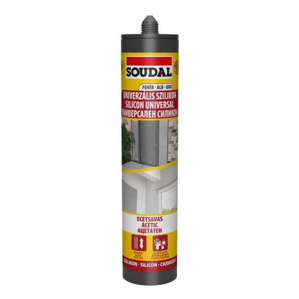 Универсален силикон 280 мл бял SOUDAL е подходящ за уплътняване на фуги между различни строителни и довършителни материали. Използва се за херметизация на прозорци и врати, уплътняване около рамки, както и за изглаждане на фуги при керамични плочки.
