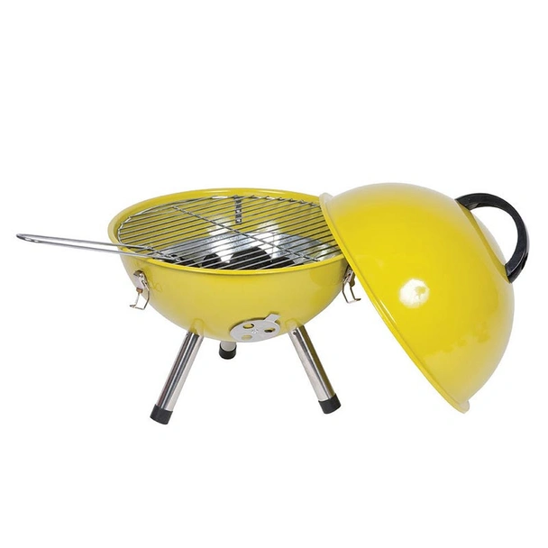 Мини барбекю с размери 30/46 см, подходящо за къмпинг, за Вашия двор, тераса или градина.То е леснопреносимо, практично и ще имате възможност да приготвите  любимите си ястия на скара за семейството, близки и приятели. Барбекюто разполага с подвижен капак с отвори и скара с дръжка, тавичка за въглища, която предпазва основния корпус. Снабдено е с три крачета и е прахово боядисано отвън и отвътре. Изработено е от здрава емайлирана стомана и се предлага в жълт цвят.