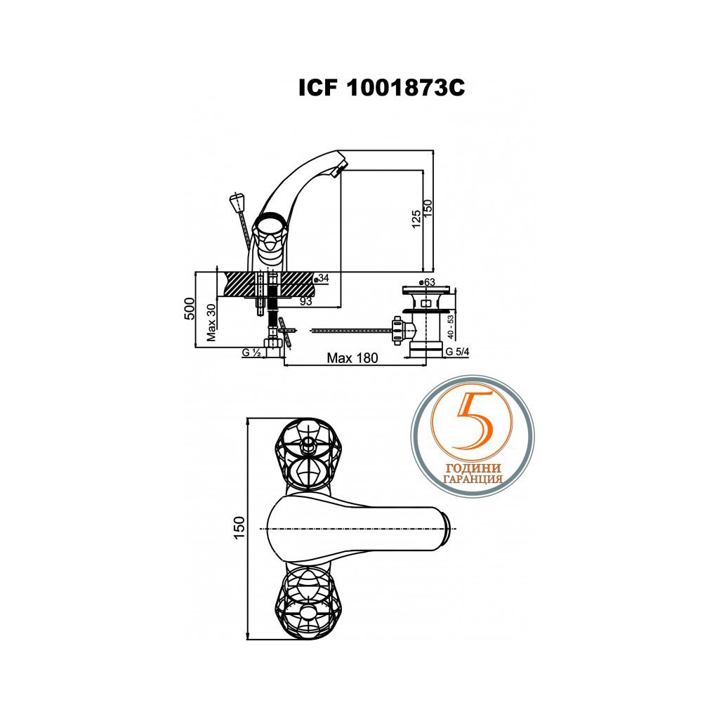 - Керамичен затварящ механизъм: Смесителят разполага с висококачествен керамичен механизъм, който гарантира плавно и прецизно регулиране на водния поток и температурата. Керамиката предотвратява течове и износване, дори при често използване.